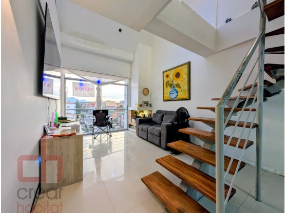 Apartamento duplex en quinto piso con vista exterior , con vista al Sur y Oriente de la ciudad, cuenta con 127 mt2 de area construida , donde encontramos trtes habitaciones, cuatro baños, dos estudios ubicdos en cada piso, terraza de 10 mt2 en alcoba principal, dos parqueaderos y deposito.